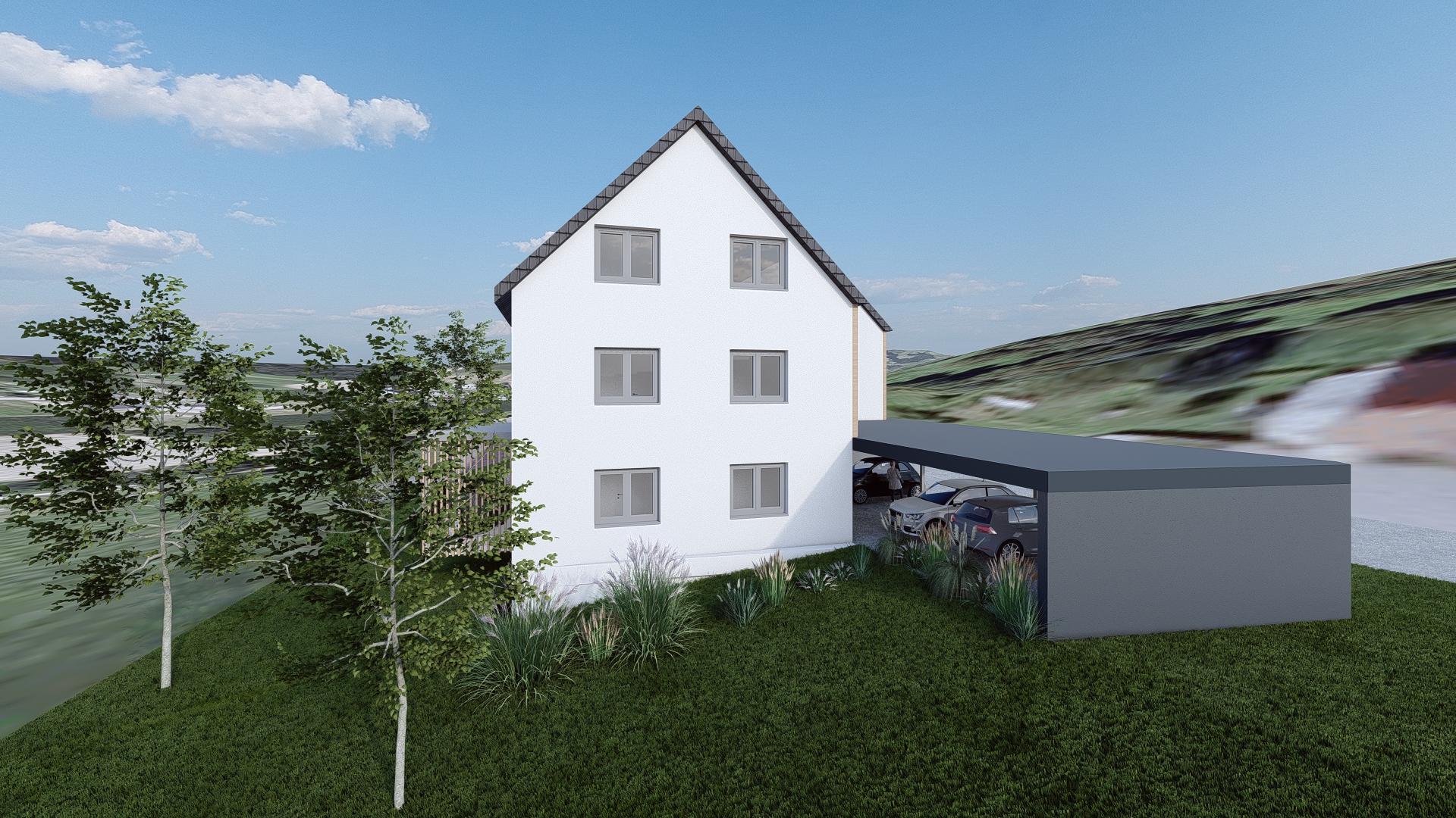 Das Haus ist vollständig unterkellert. Jeder Wohneinheit ist ein eigenes Kellerabteil mit ca. 25 m² zugeordnet. Ein überdachtes Carport ist ebenfalls Bestandteil des Projekts.
