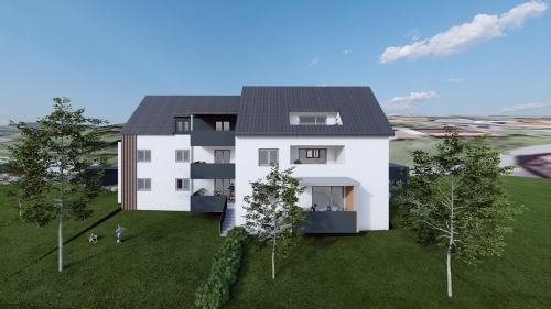 Das Gebäude ist südwestlich ausgerichtet und überzeugt durch große Fensterflächen, die für helle, lichtdurchflutete Räume sorgen. Ergänzt wird dies durch großzügige, überdachte Balkone, die nicht einsehbar sind und somit ein hohes Maß an Privatsphäre bieten. Sämtliche Wohnungen können barrierefrei erschlossen werden - AUFZUG